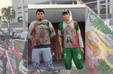 Por largas horas atraviesan los estados de Puebla, Veracruz y Tabasco hasta llegar a su natal Campeche, todo en bicicleta y cargando en sus espaldas las estatuas de más de un metro de altura y diez kilos.