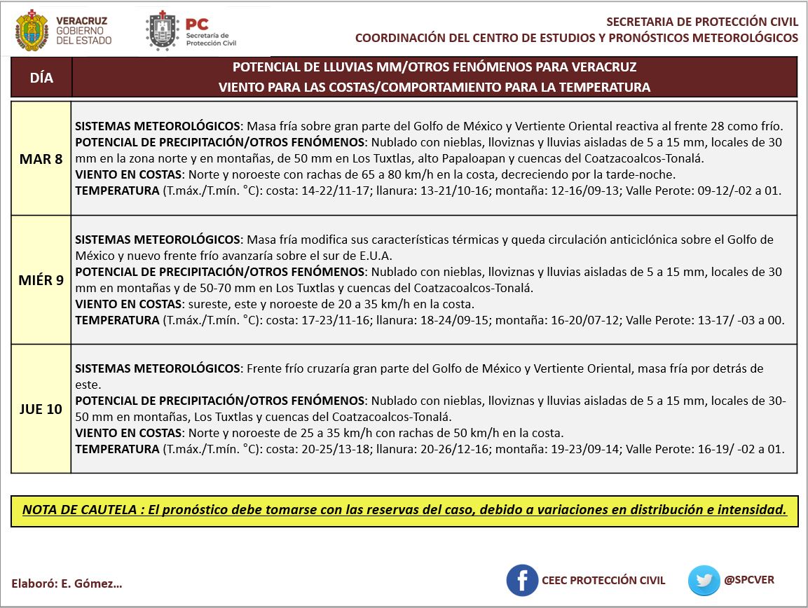 Población veracruzana: #AlertaGris por frente frío 28-Lluvia-Norte