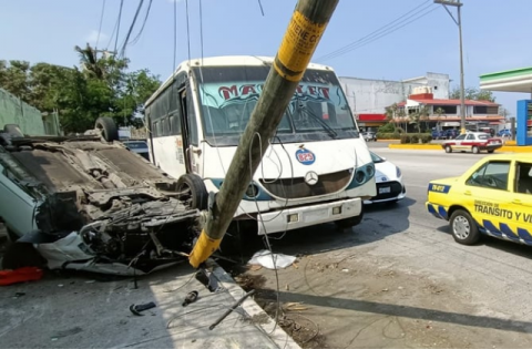 Trabajador de Pemex choca contra poste y se vuelca en Veracruz