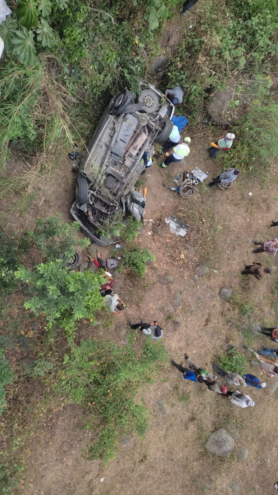 Luego de que la camioneta cayó del puente Río Seco II una llamada al 911 alertó a elementos de seguridad al punto para dar atención a las personas que iban a bordo.