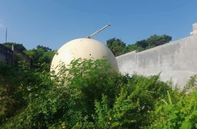 El hombre dijo que es una bola metálica que anteriores administraciones del lugar colocaron en el terreno, sin embargo, debido a la falta de mantenimiento, se encuentra casi cubierta por maleza.