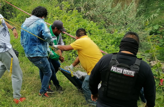 Elementos de Protección Civil y de la Policía Estatal, así como pobladores, realizaron el descenso al barranco y procedieron a sacar los cuerpos.