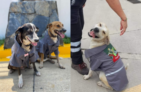 Pero lo que más causó asombro, fue que ahora decidieron vestirlos con uniformes de la empresa y así protegerlos del frío; son más de cuatro perritos los que han protegido.