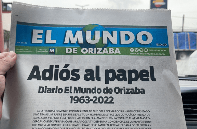 El espacio, que fue el semillero de muchos reporteros de la región de las Altas Montañas de Veracruz que hoy son dueños de sus medios, cerró 100 fuentes laborales, involucrados en la impresión y la distribución del periódico el Mundo de Orizaba y Córdoba, los de mayor circulación en la zona centro, que informaron por seis décadas.
