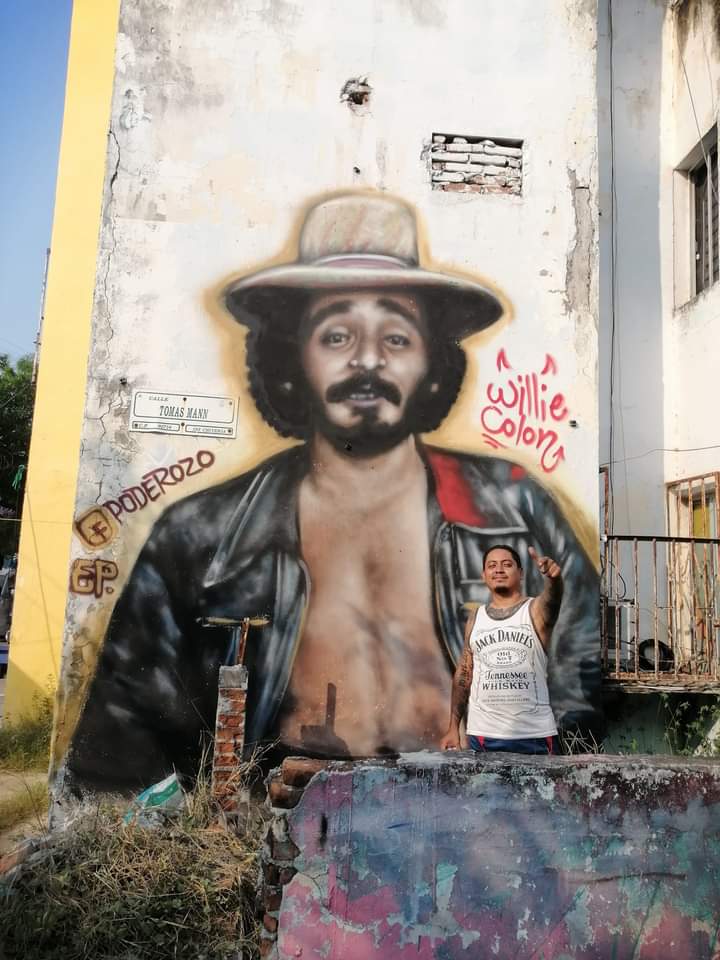 "Mucha salud y bendiciones para el gran maestro Willie Colón, a quien homenajeamos con este bonito mural, y amablemente nos ha honrado compartiendo en su Facebook", escribió en su página de Facebook el muralista.