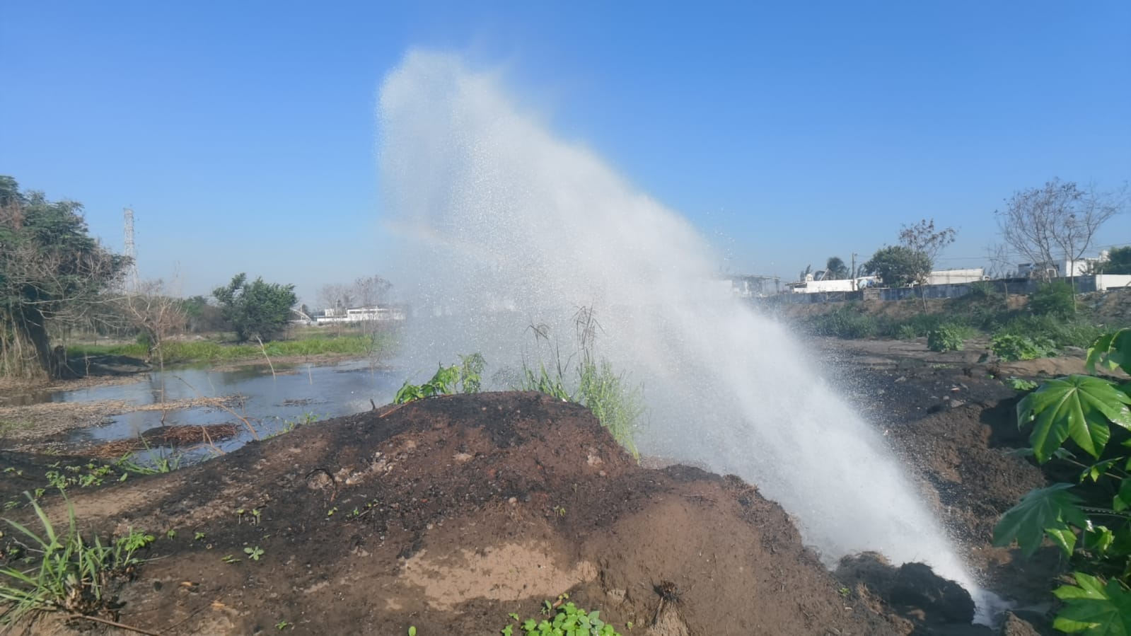 Veracruz, Ver.- La tubería principal que conecta la Planta Potabilizadora del Tejar para abastecer de agua al municipio de Veracruz presentó una enorme fuga.