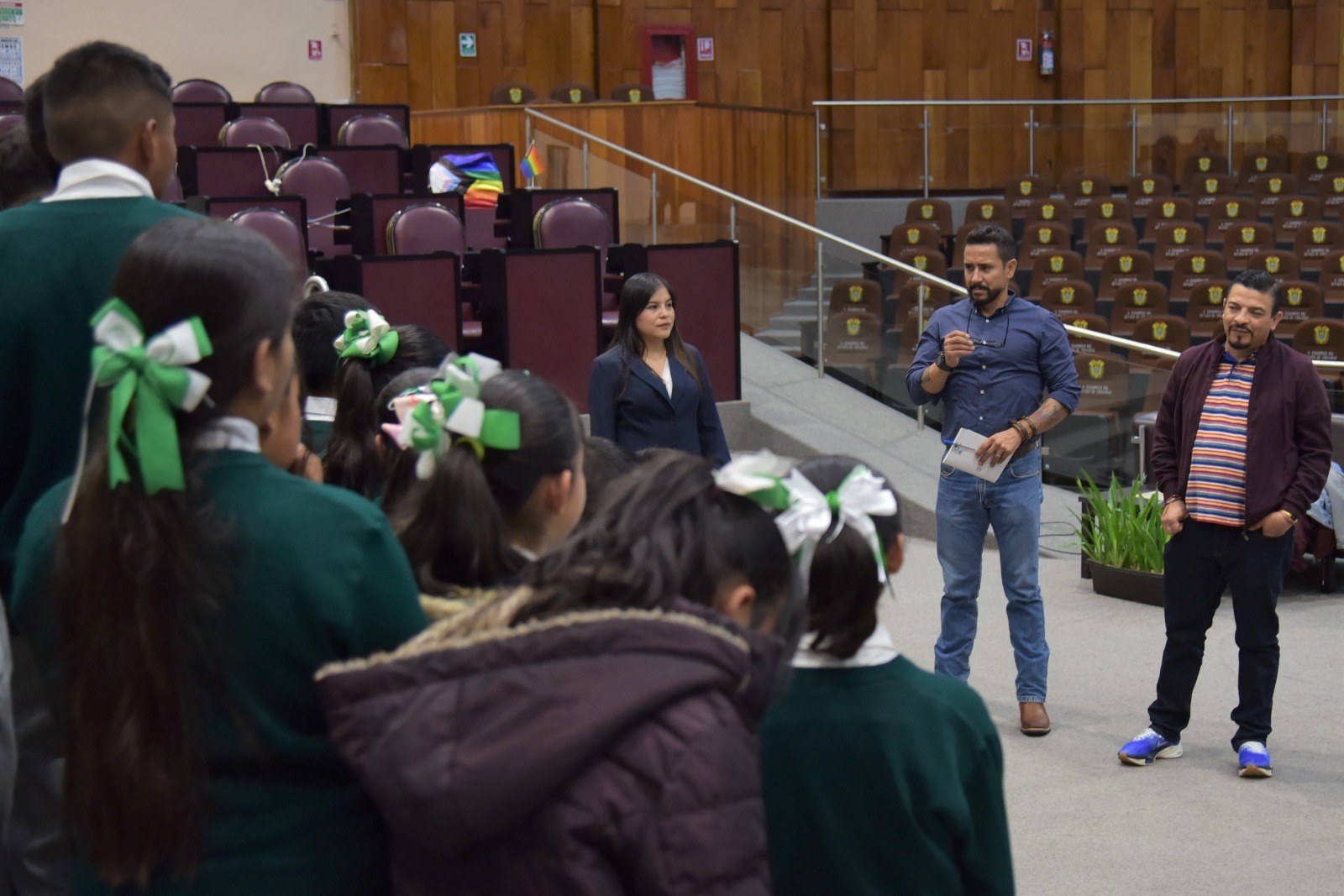 Con apoyo de personal de la coordinación de Archivo, Biblioteca y Hemeroteca, jóvenes y autoridades escolares, encabezados por el director de la institución educativa, Emilio Aparicio Torres, realizaron un recorrido por las instalaciones del Palacio Legislativo, en el que conocieron las áreas administrativas, el auditorio Sebastián Lerdo de Tejada, las distintas salas del edificio, así como el Recinto Oficial de Sesiones, donde se les informó la conformación paritaria de la actual Legislatura y las funciones de las y los diputados.