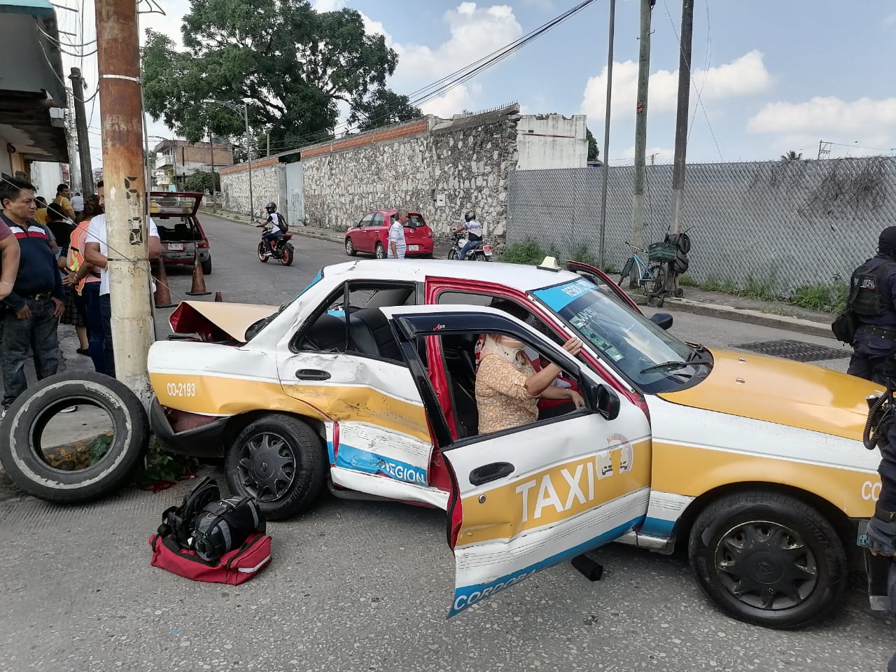 Córdoba, Veracruz.- Una camioneta oficial de la Unidad Municipal de Protección Civil del ayuntamiento de Córdoba embistió a un taxi esta tarde en la ciudad de Córdoba. En este fuerte accidente resultaron lesionados el conductor y la copiloto que quedó prensada, debido a este evento fue necesario el cierre de la circulación para su rescate y el retiro de las unidades.
