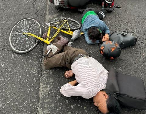 Tras el impacto, automovilistas que circulaban sobre el bulevar bajaron de sus unidades para improvisar el abanderamiento del área y evitar que las personas lesionadas fueran atropelladas por otros conductores.