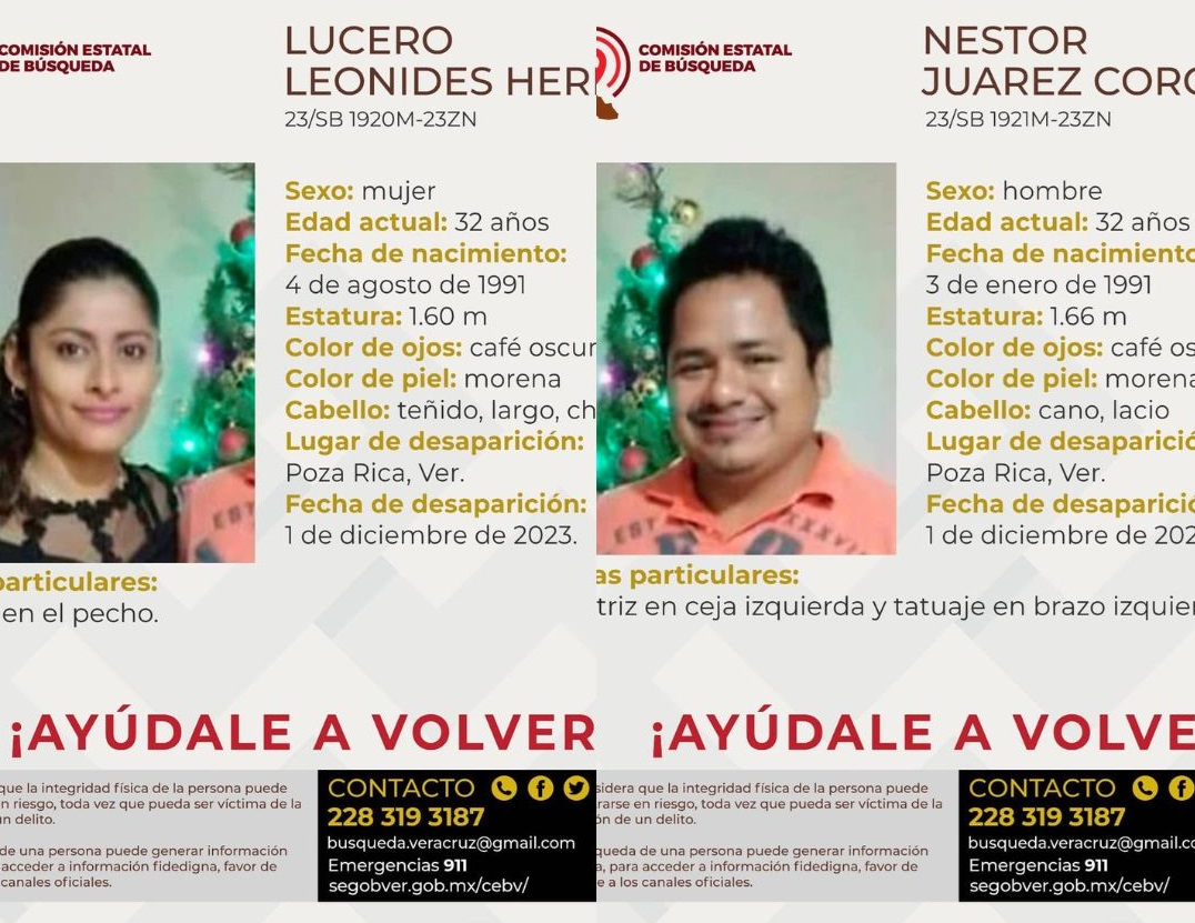 La Comisión Estatal de Búsqueda de Veracruz dio a conocer las fichas de búsqueda de los dos ciudadanos desaparecidos. Según reportes, los familiares perdieron contacto con ellos cuando se dirigían a Poza Rica.