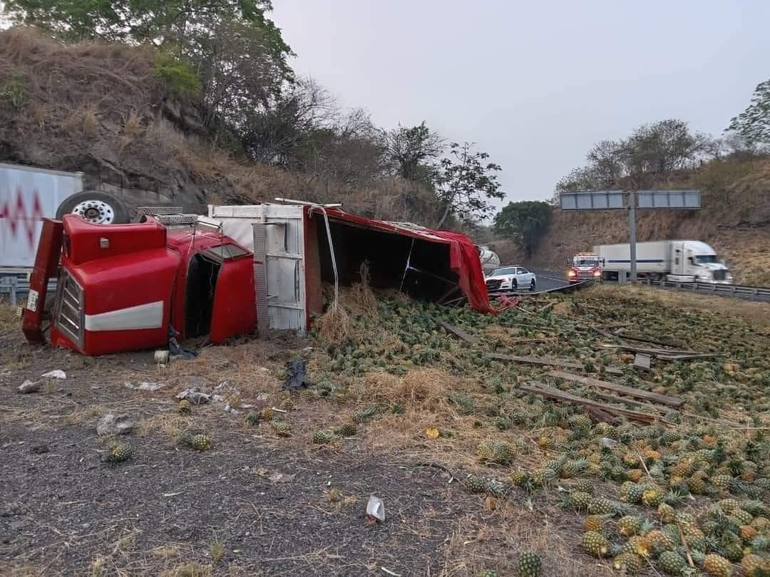 Por su parte, agentes de la Guardia Nacional División Caminos realizaron el retiro de la unidad sin la piña debido a que pobladores de la zona y algunos automovilistas se robaron la mercancía.