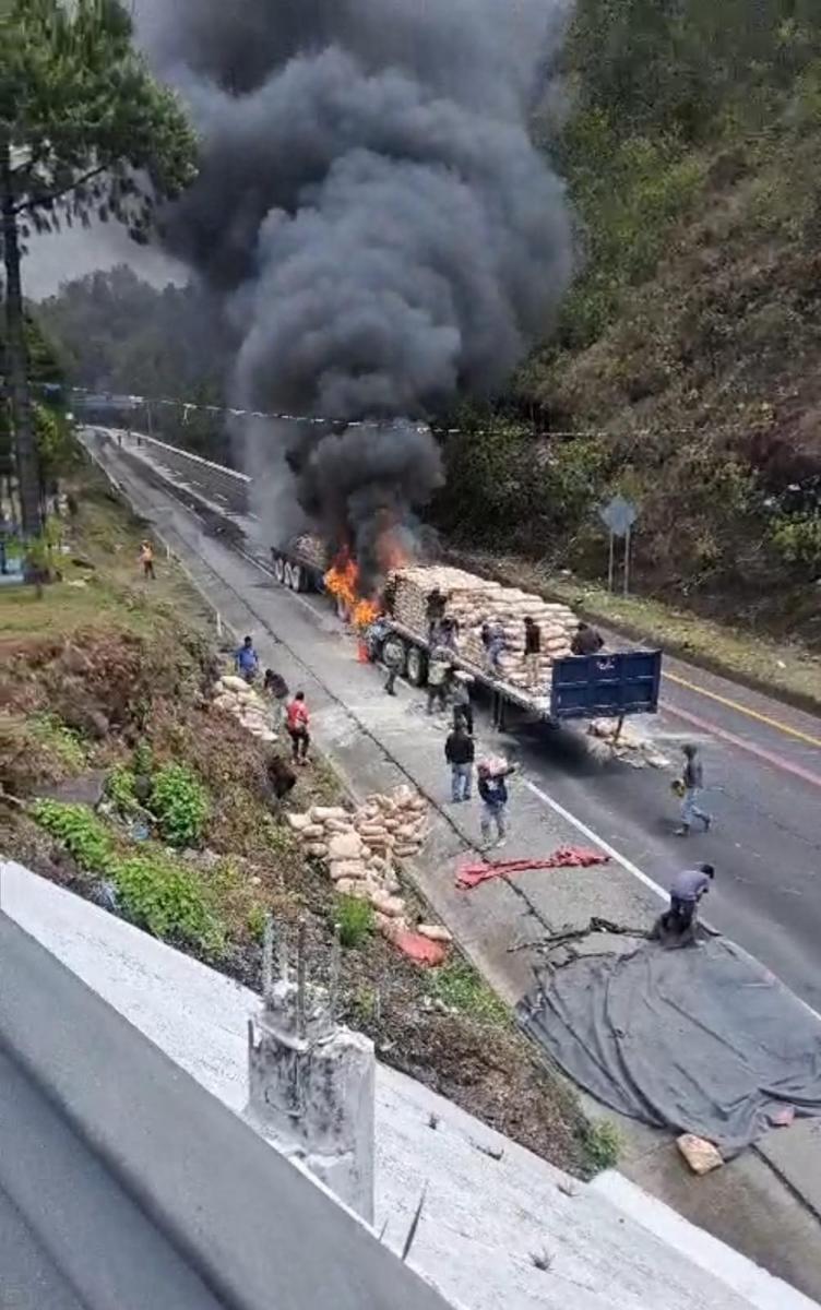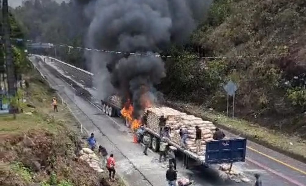 A la altura del kilómetro 235, en la segunda rampa, las llantas de conector de los remolques se incendiaron debido a un sobrecalentamiento, al darse cuenta, el operador trató de controlar el fuego, pero al verse superado, solo tuvo tiempo de desprender el tractocamión para evitar que se consumiera la cabina.