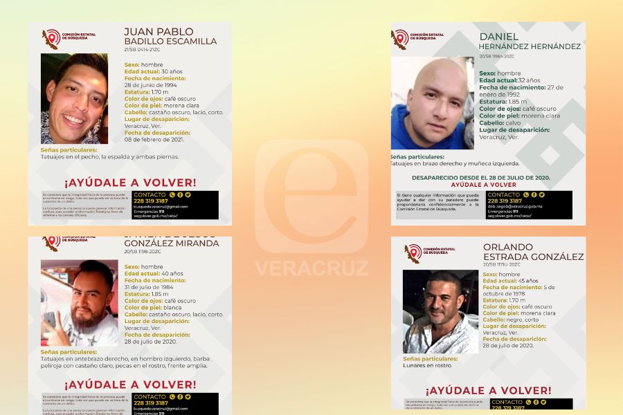 Se trata de Orlando Estrada González, Javier de Jesús González Miranda, Daniel Hernández Hernández y Juan Pablo Badillo Escamilla, quienes desaparecieron entre 2020 y 2021.