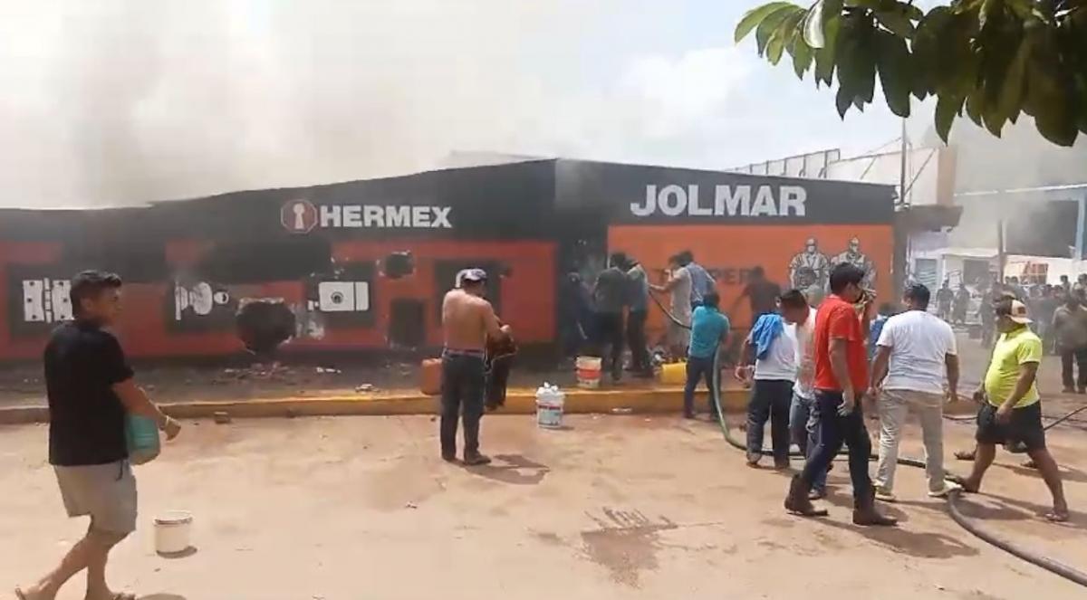 Pajapan, Ver.- Un incendio de grandes proporciones se registró en la ferretería “Jolmar” del municipio de Pajapan, en la zona serrana del sur de Veracruz, lo que desató una rápida movilización de los cuerpos de emergencia y de los propios habitantes del lugar.