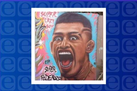 La imagen que el artista plasmó en la pared corresponde a un momento en el que “Lazy Boy” aparece lanzando un grito eufórico. Como parte de los detalles, el peleador lleva una cadena de oro en el cuello.