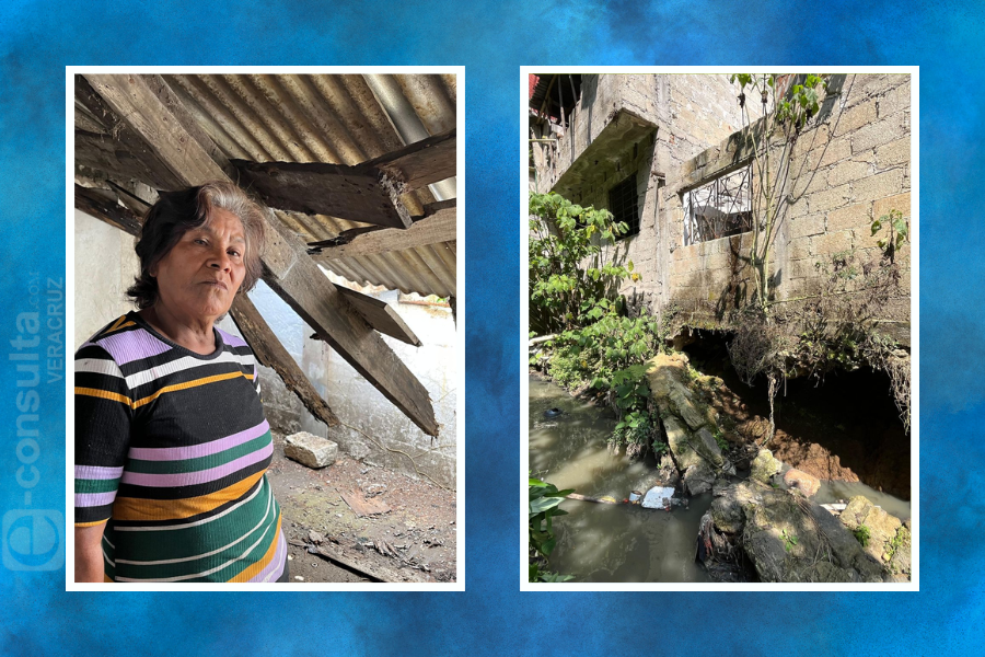 Xalapa, Ver.— La casa de Teodora Landa Faifán está en peligro por un socavón provocado por escurrimientos de aguas negras. Su propiedad se ubica en la Ampliación José Mancisidor de la colonia Emiliano Zapata, en la ciudad de Xalapa, Veracruz.