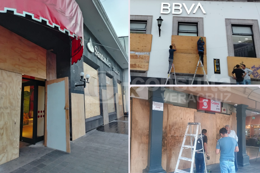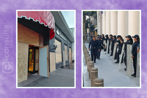 Xalapa, Ver.— Las sucursales bancarias y otros negocios del centro de la ciudad de Xalapa, Veracruz, fueron blindados previo a la marcha feminista de este sábado 8 de marzo (8M), Día Internacional de las Mujeres. Cientos formarán parte del movimiento para exigir alto a la violencia contra las mujeres.