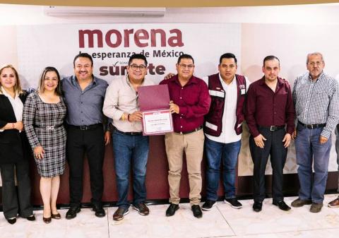 El dirigente estatal de MORENA, Esteban Ramírez Zepeta, hizo entrega del documento que los acredita como promotores a: