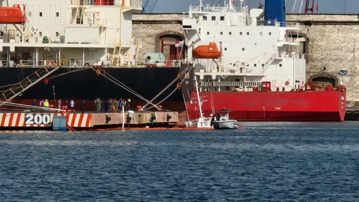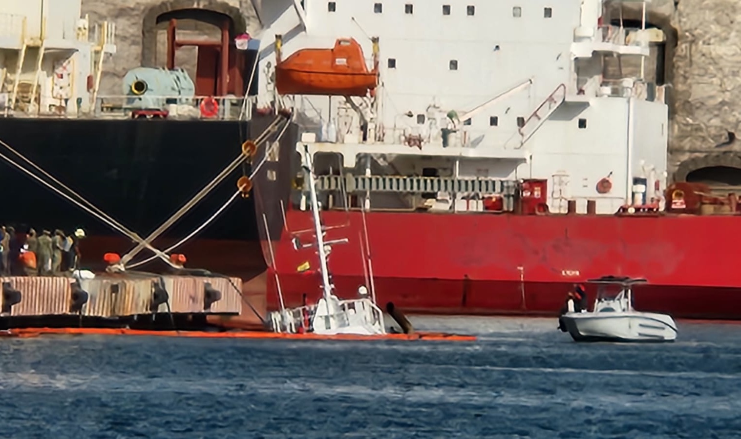Por este incidente, los técnicos navales colocaron una red para evitar que hubiera contaminación por derrame de combustible.