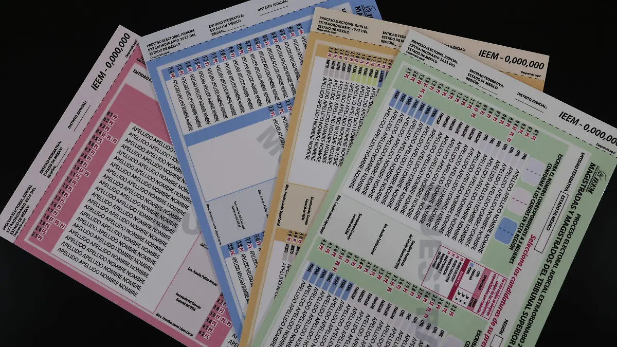 Al llegar a la casilla, los votantes recibirás seis boletas para la elección federal, cada una de distinto color: una morada para elegir a ministras y ministros de la Suprema Corte de Justicia de la Nación; una azul para magistraturas de la Sala Superior del Tribunal Electoral del Poder Judicial de la Federación; una turquesa para magistraturas del Tribunal de Disciplina Judicial; una naranja para magistraturas de las Salas Regionales del Tribunal Electoral del Poder Judicial de la Federación; una rosa para magistraturas de circuito; y una amarilla para juzgados de distrito.