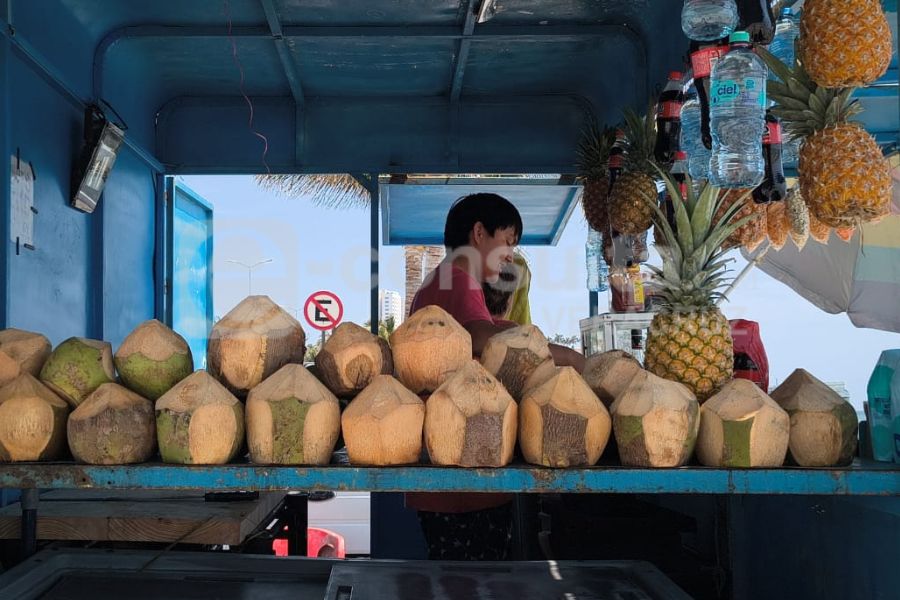 A casi 10 kilómetros del centro histórico de Veracruz sobre la playa Gaviota de Boca del Río se localiza e changarro de Marilú Landa, quien desde hace 20 años se dedica a la venta de agua de coco.