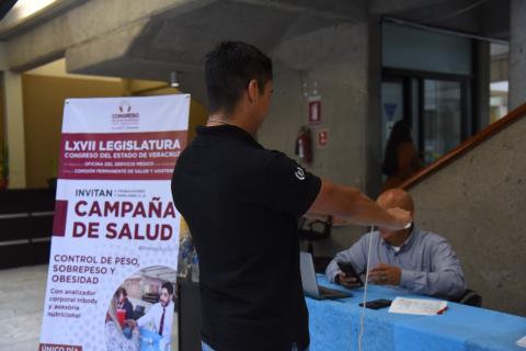 Xalapa, Ver., 23 de abril de 2025.- Con la finalidad de fomentar la cultura de la atención a la salud, el Congreso del Estado de Veracruz, a través del Servicio Médico, y la Comisión Permanente de Salud y Asistencia, realizaron la jornada médica enfocada al control de peso, sobrepeso y obesidad, con analizador InBody y asesoría nutricional.