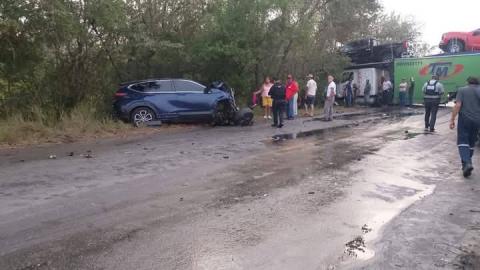 La víctima manejaba una camioneta Honda CRV e iba acompañada por otras dos personas, mientras que el tráiler trasladaba camionetas pickup y se dirigía al puerto de Altamira.