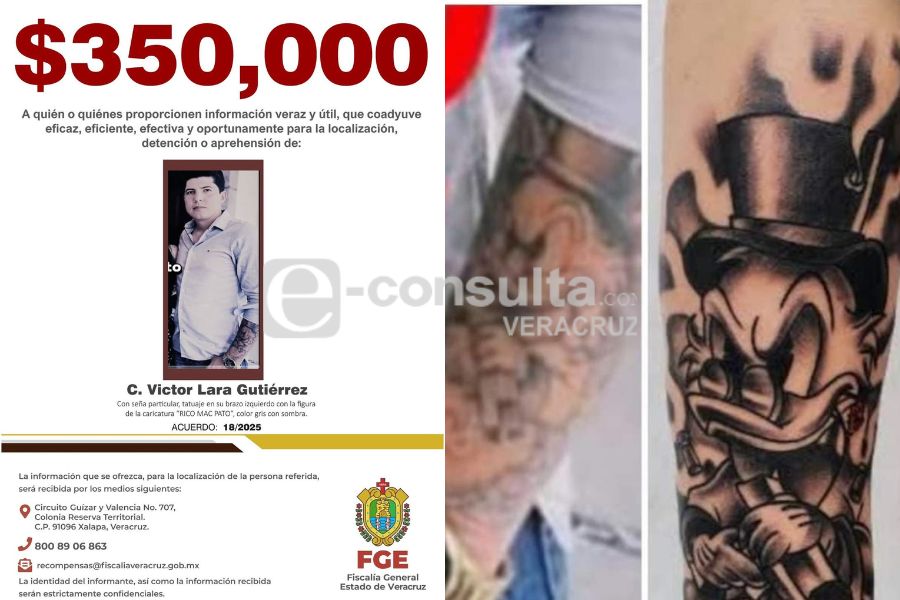 La autoridad investigadora informó sobre la recompensa mediante una ficha publicada en su sitio oficial y redes sociales, en la que solicita a la ciudadanía su colaboración para dar con el paradero del presunto homicida aportando como seña de identificación del acusado un tatuaje del personaje “Rico Mac Pato” en el brazo izquierdo.