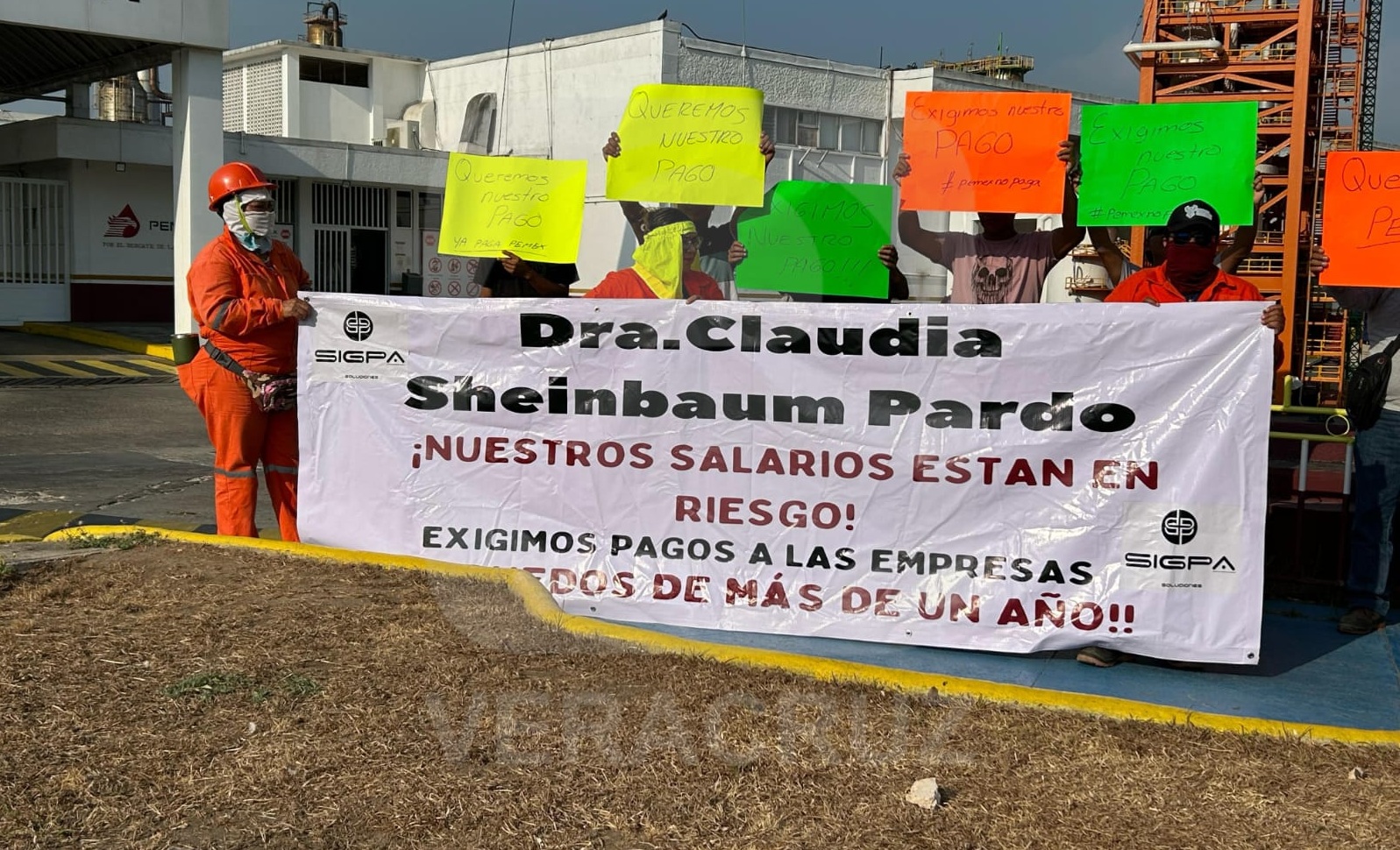 Contratistas protestan en Mina por deuda millonaria de Pemex