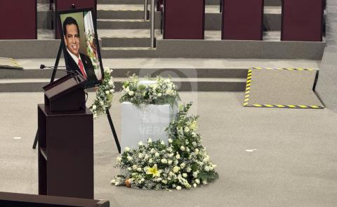 Las cenizas del exgobernador priista fueron llevadas la mañana de este domingo 11 de mayo al recinto legislativo, donde durante más de una hora sus excolaboradores, amigos y familiares le rindieron guardias de honor para despedirle.