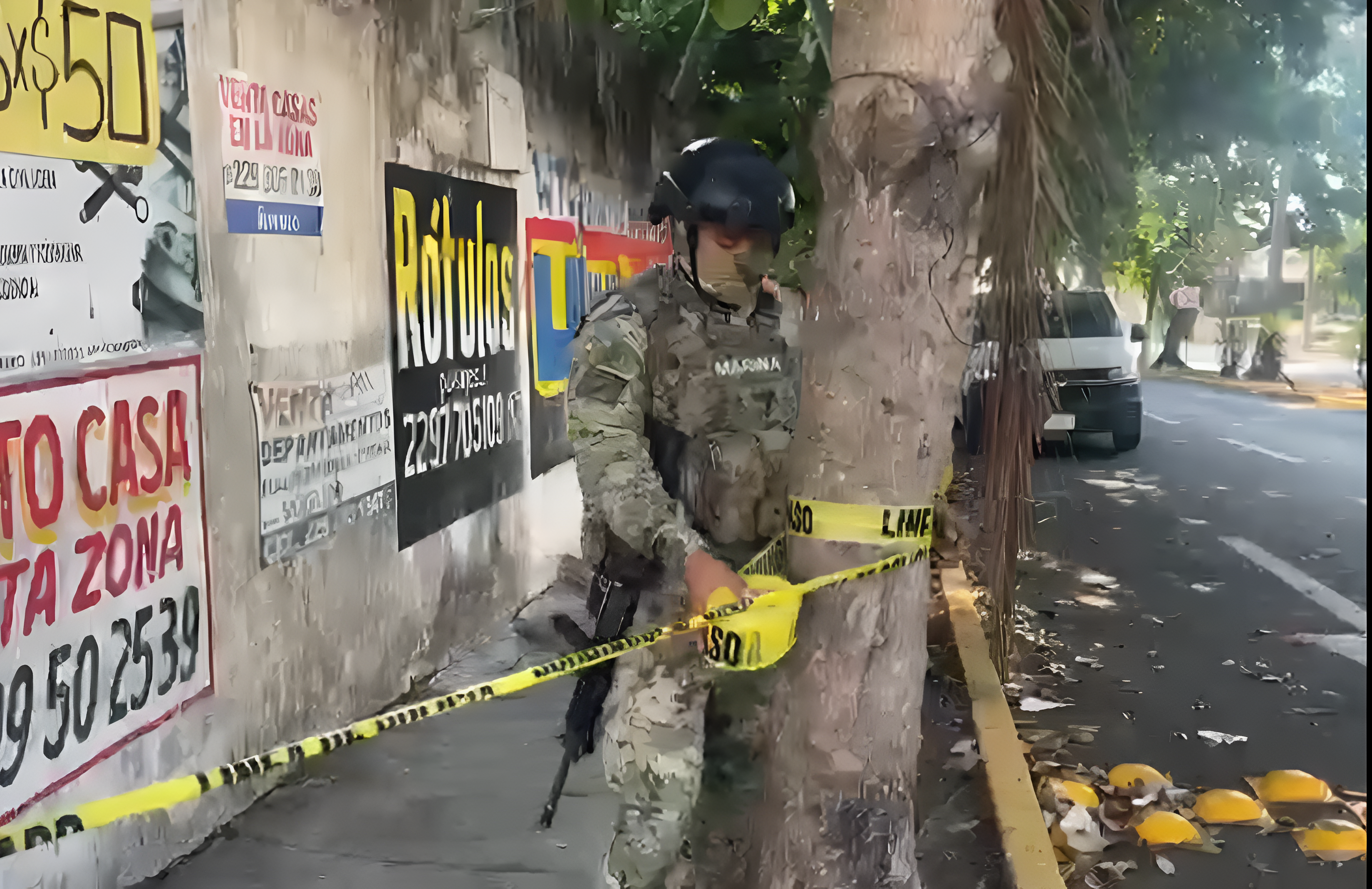En redes sociales también circula un video que muestra a un numeroso grupo de agentes desplegados frente a un centro comercial en la avenida Juan Pablo II, justo frente a las oficinas del Poder Judicial en Boca del Río,.