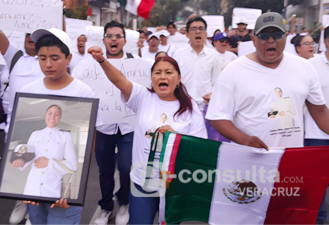 Con fotografías de la joven América Yamilet Sánchez Hernández y la bandera de México, avanzaron los manifestantes por una de las avenidas principales que llevan al centro de la ciudad de Xalapa, Veracruz. Con esta acción, exigieron que este caso no quede en el olvido y que se lleven a cabo investigaciones.