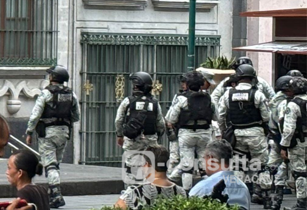 La Guardia Nacional recorrió parte del centro de la capital veracruzana: el área de recreación familiar, las céntricas calles y el palacio municipal.