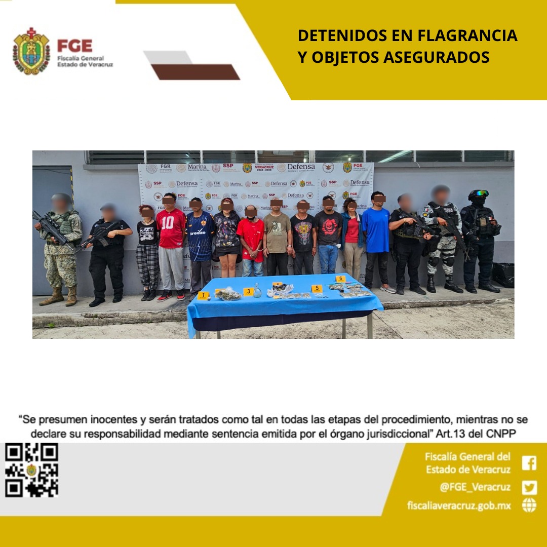 En dicho operativo se detuvo en flagrancia a 10 personas: Efraín “N”, María Enriqueta “N”, Tony Francisco “N”, Ramón “N”, Carlos Alberto “N”, Víctor “N”, Alejandra Yamileth “N”, Martín “N”, Erick Daniel “N” y Naomi Yoselin “N”. Asimismo se aseguraron pipas de cristal, hierba seca color verde, con características similares a la droga conocida como marihuana, piedra cristalina y accesorios para pipas.