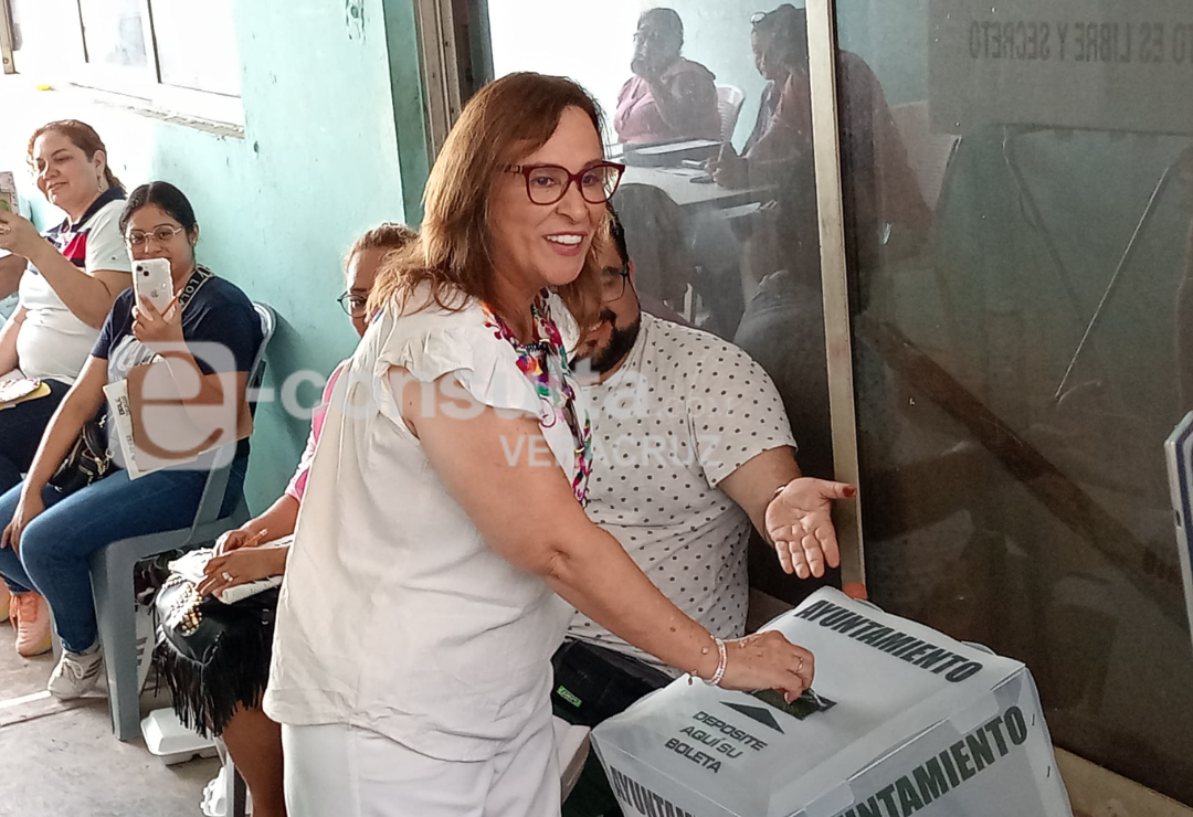 La gobernadora de Veracruz emitió su voto para renovar la alcaldía de Coatzacoalcos en la casilla ubicada 777 Contigua, ubicada en la avenida Miguel Ángel de Quevedo número 1404, en la colonia María de la Piedad, en el municipio sureño.