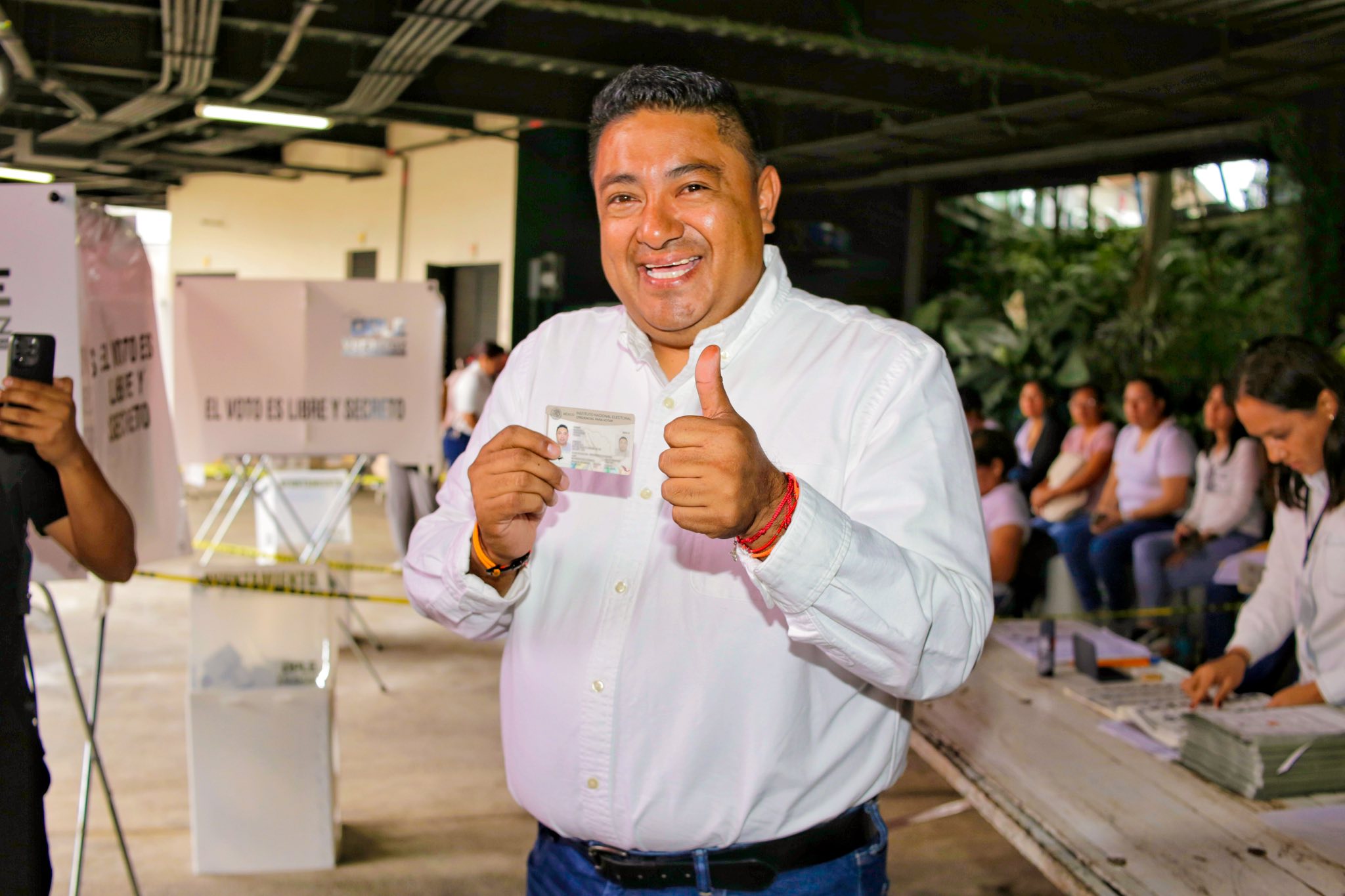 Xalapa, Ver.- Román Moreno, candidato de Movimiento Ciudadano (MC) a la alcaldía de Xalapa, acudió la mañana de este sábado 1 de junio a emitir su voto y expresó su confianza en que los resultados le sean favorables al término de la jornada.