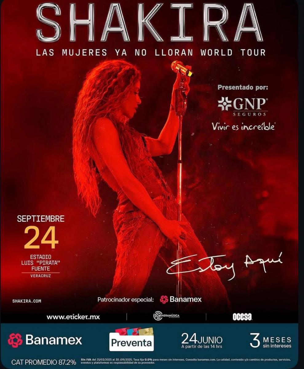 Veracruz, Ver.- Shakira visitará el puerto de Veracruz como parte de su gira “Las Mujeres Ya No Lloran”. La cita está programada para el próximo 24 de septiembre en el Estadio Luis ‘Pirata’ Fuente, recientemente remodelado.
