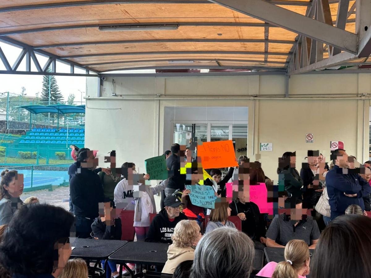 Padres de familia y alumnos también se sumaron a la protesta, denunciando represalias y el despido injustificado del profesor de tenis Luis Pilatuña, a quien reconocieron por su trayectoria y compromiso con la formación deportiva.
