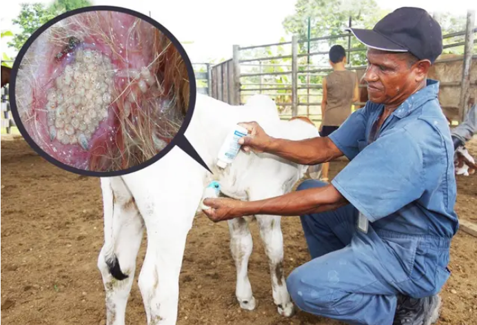 A través de un video en redes sociales, Macedo Peralta alertó sobre la presencia de esta larva de la mosca, en un ejemplar, que representa un grave riesgo para la ganadería al provocar heridas profundas e infecciones en el ganado y otros animales de sangre caliente.