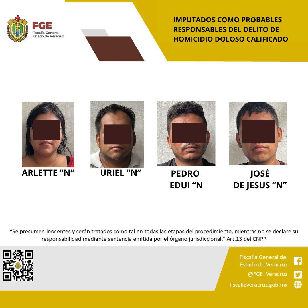 Los imputados fueron identificados como José de Jesús N, mecánico originario de Soconusco; Pedro Edui N, taxista de Minatitlán; Uriel N; y Arlette N. De acuerdo con la Fiscalía General del Estado (FGE) de Veracruz, el crimen se registró el pasado 8 de abril, cuando la víctima salió de su domicilio para atender un servicio solicitado presuntamente por Arlette.