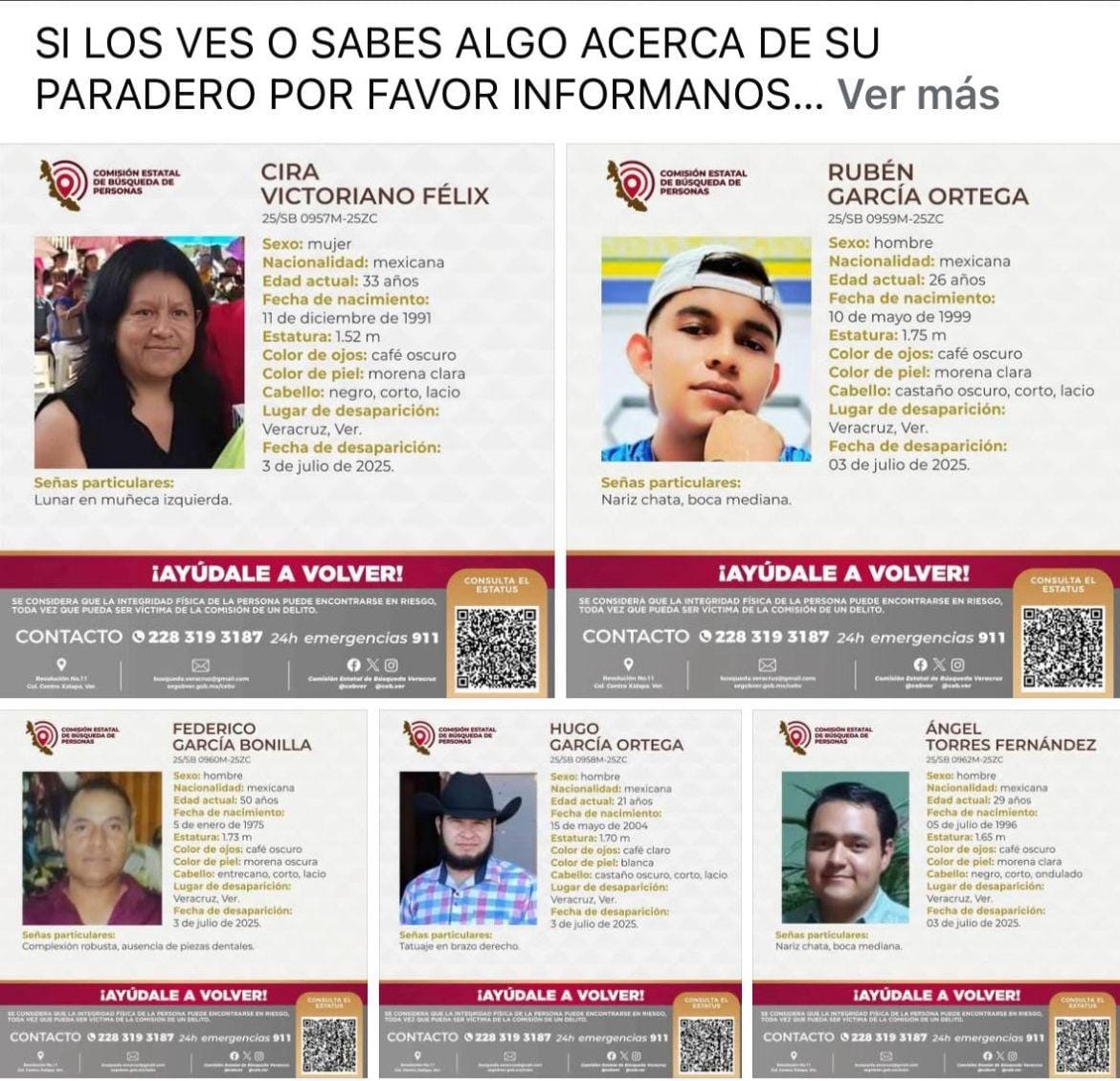 Cira Victoriano Félix, Rubén García Ortega, Federico García Bonilla, Hugo García Ortega y Ángel Torres Fernández desaparecieron el pasado jueves 3 de julio, aproximadamente a las 9:00 de la noche.