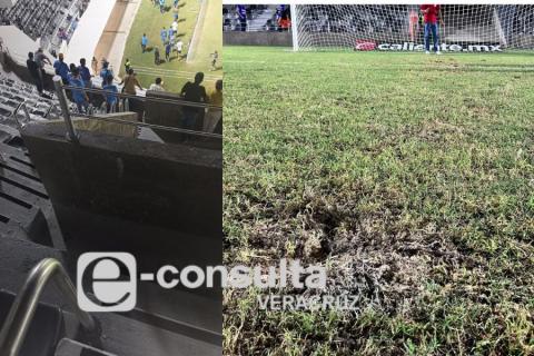 De acuerdo con Antonio “El Divino” López, quien fuera jefe de Comunicación de los desaparecidos Tiburones Rojos de Veracruz en tiempos del exdirectivo Fidel Kuri, el césped no aguantó los cuatro partidos que se llevaron a cabo en el estadio.