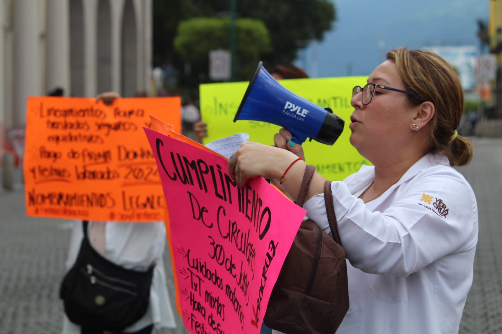 Los inconformes llegaron de distintos hospitales, incluidos los de Boca del Río, Córdoba, Martínez de la Torre, el Hospital Civil “Luis F. Nachón” de Xalapa y el Centro de Alta Especialidad (CAE) “Dr. Rafael Lucio”.