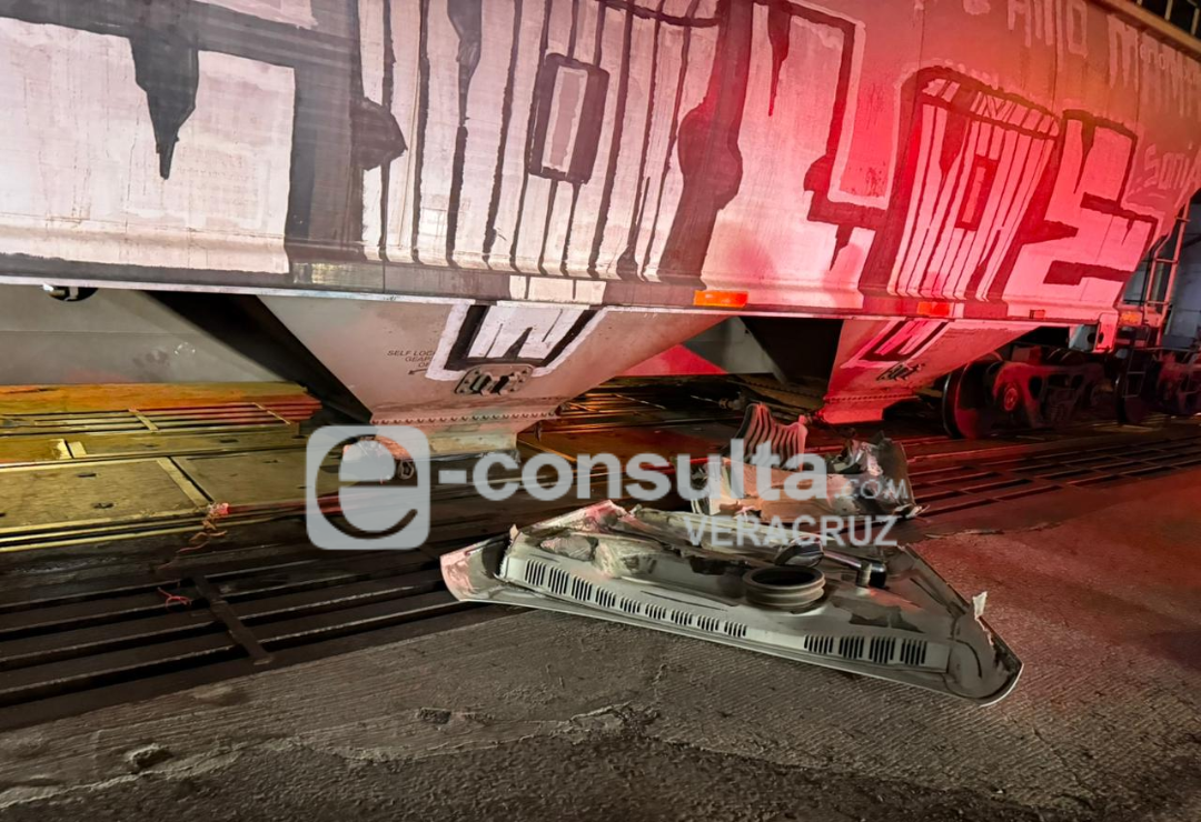 Veracruz, Ver.— Un tren de la empresa Ferromex destrozó la cabina de un tráiler a la altura de la empresa Tenaris Tamsa ubicada sobre la carretera federal 140, Veracruz - Xalapa.