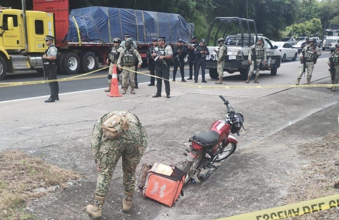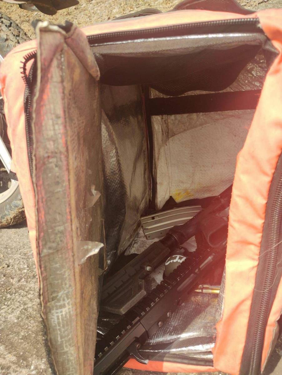 El primer hecho ocurrió en la autopista México-Tuxpan, a la altura del kilómetro 12, donde fue localizada una motocicleta con una mochila similar a las utilizadas por repartidores Rappi. En su interior, los elementos de la Guardia Nacional, la Guardia Nacional División Carreteras y la Secretaría de Seguridad Pública (SSP) encontraron un arma larga, una granada de fragmentación y varios cargadores.