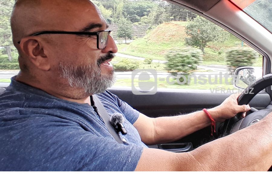 Con el volante firme y la mirada hacia el horizonte, Frumencio cuenta su historia durante un trayecto que va desde Las Trancas, en la zona sur de la capital veracruzana, hasta la Secretaría de Finanzas y Planeación (Sefiplan), por la transitada avenida Lázaro Cárdenas.