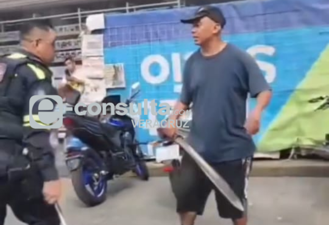 Córdoba, Ver.— Por alterar el orden en la vía pública, la Policía Municipal de Córdoba, Veracruz, intervino a un individuo armado con machete. El caso fue grabado y se viralizó en redes sociales este viernes 25 de julio.