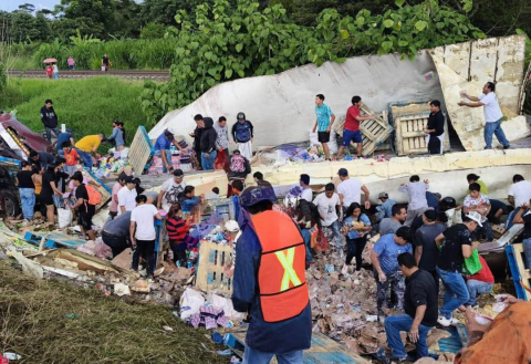 La mercancía fue tomada por personas que llegaron a la rapiña. Algunos automovilistas se detuvieron para sustraer parte de la mercancía y subirla a sus vehículos.