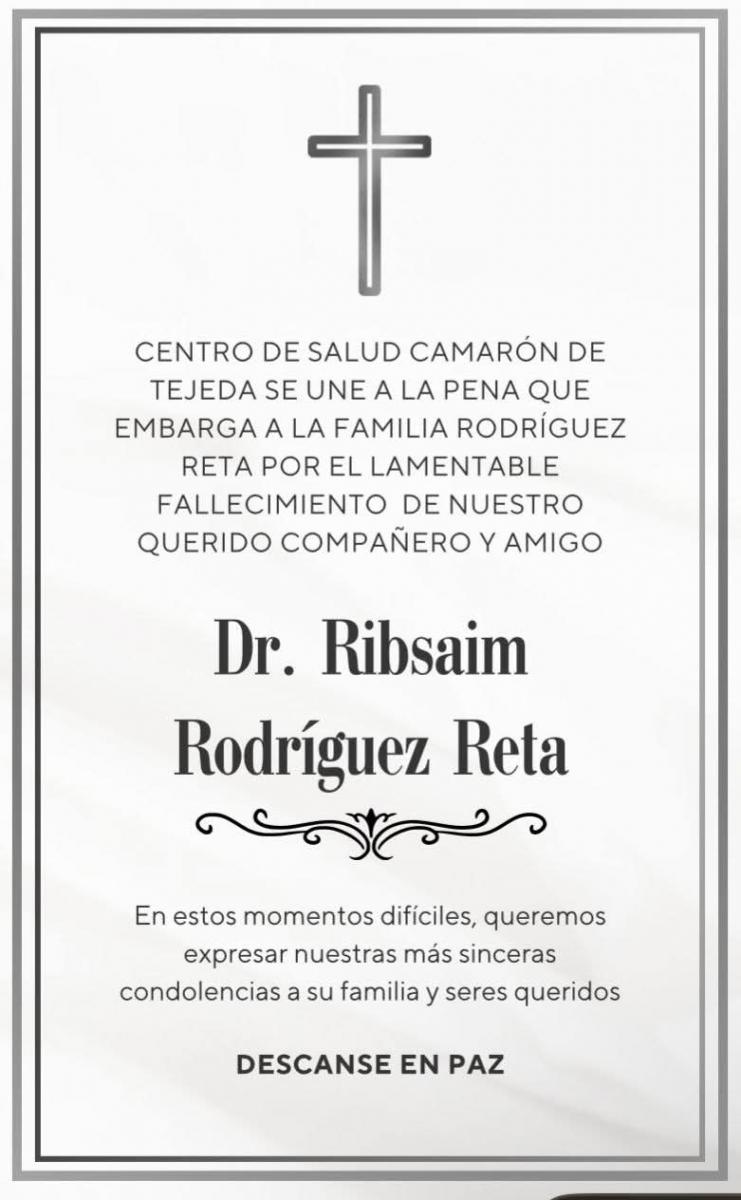 “El C.S. Camarón de Tejeda lamenta la irreparable pérdida de nuestro compañero y amigo Dr. Ribsaim Rodríguez Reta, así como condenamos tan lamentables hechos. Descansa en paz, Ribsa”, publicaron en redes sociales junto a una esquela.