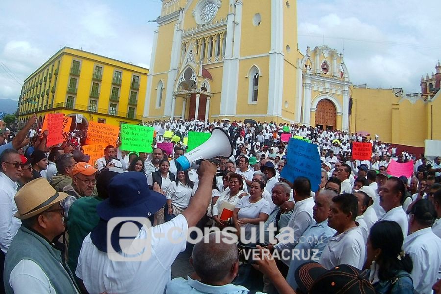 Los taxistas se concentraron en la calle Juan de la Luz Enríquez y la plaza Sebastián Lerdo de Tejada, donde hicieron pronunciamientos en contra de la actualización de la tarifa que fue publicada en la Gaceta Oficial del Gobierno del Estado el pasado lunes 21 de julio.